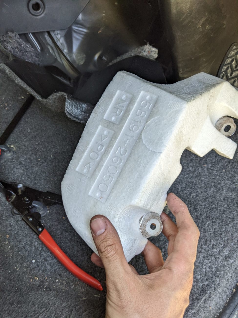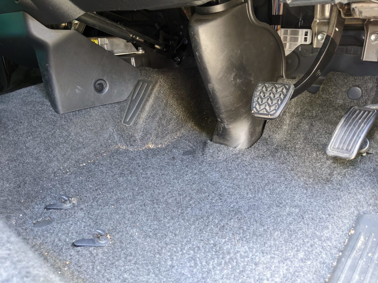 カーペットをめくってみると左足を置くところには発泡スチロールが入っています。
