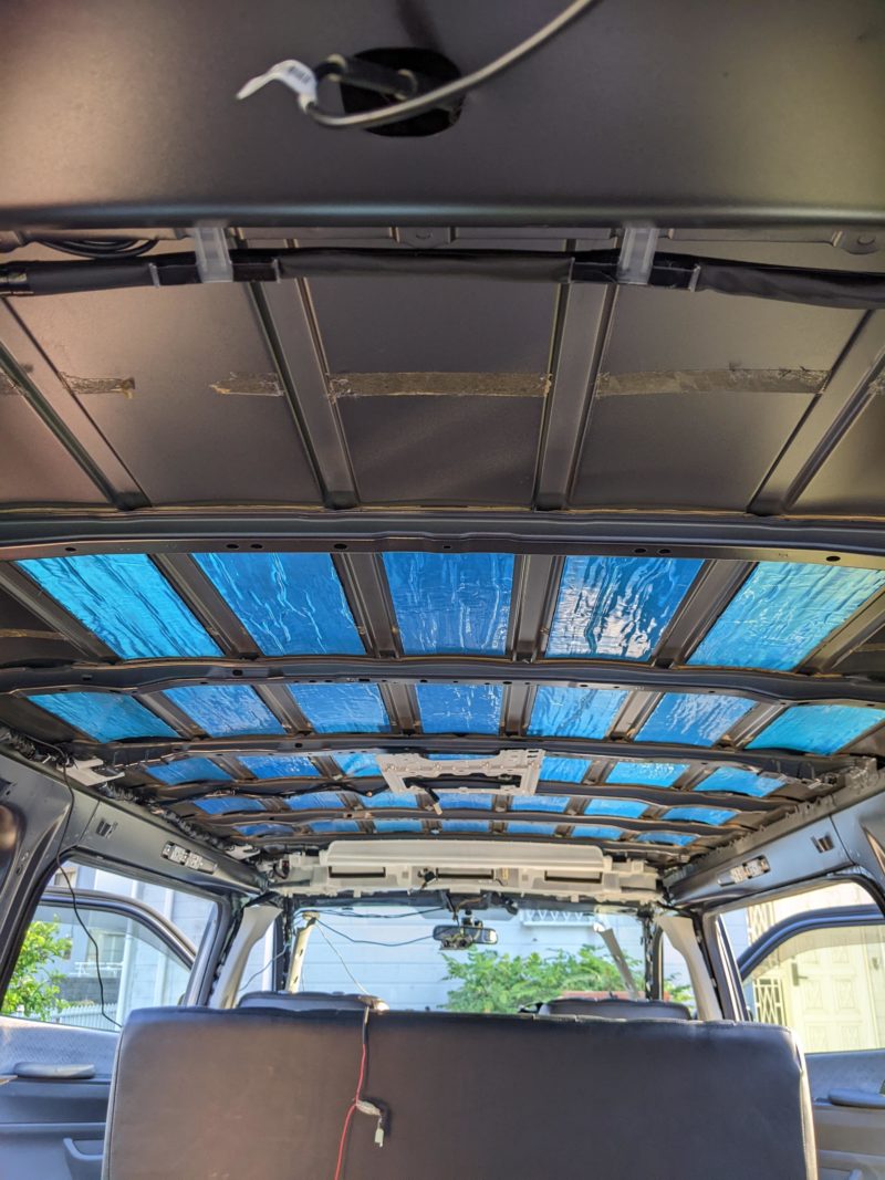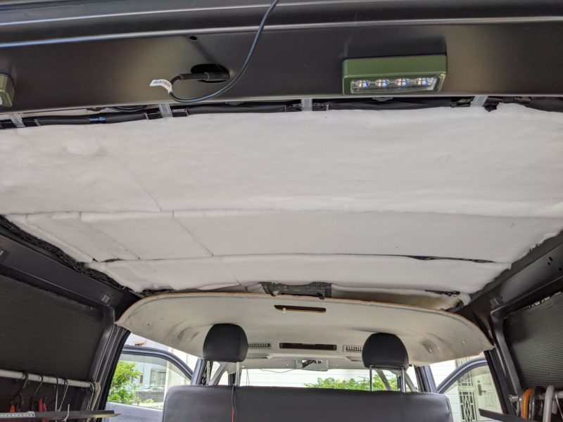 ボディカラーがグレーということと、商用車ベースで断熱材が少ないということもあり5月くらいの段階ですでに車内温度がまぁまぁ辛い温度に上がってきていたのでルーフの断熱を決意。