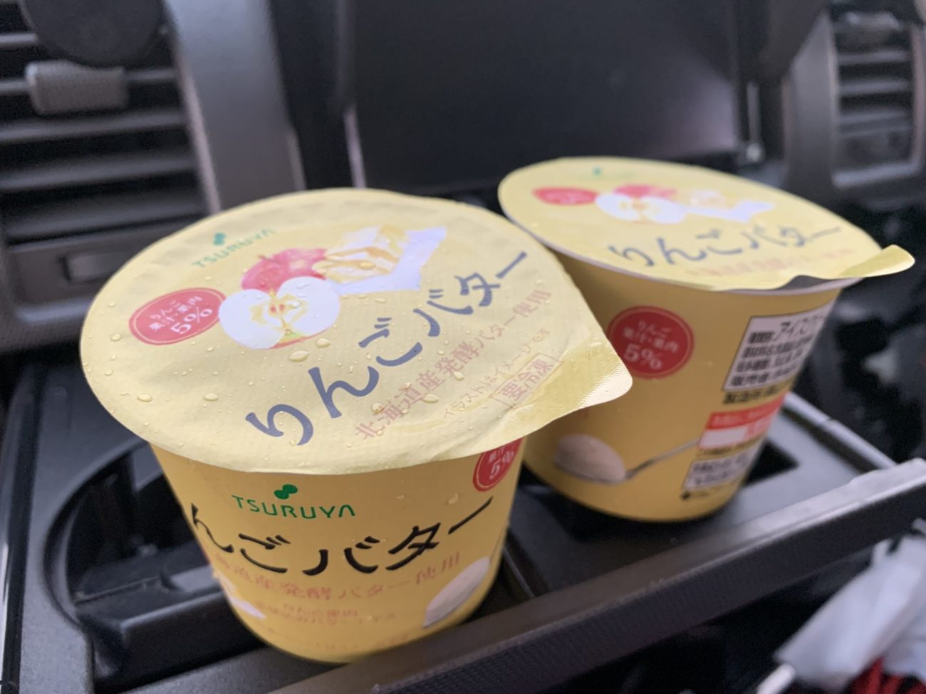 買い込んだ物の中から、とりあえず駐車場でりんごバターアイスをぺろり😋
