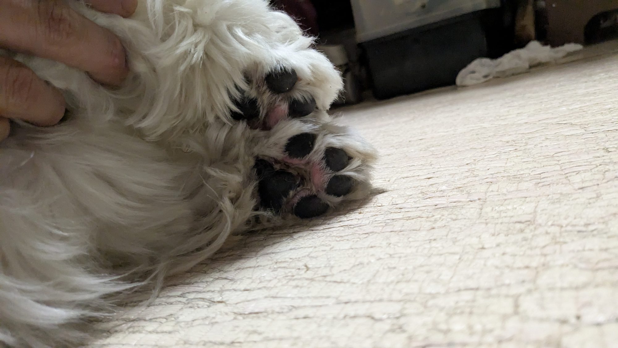 って思って、とりあえず肉球の毛を刈りとって点検!肉球可愛い♥️