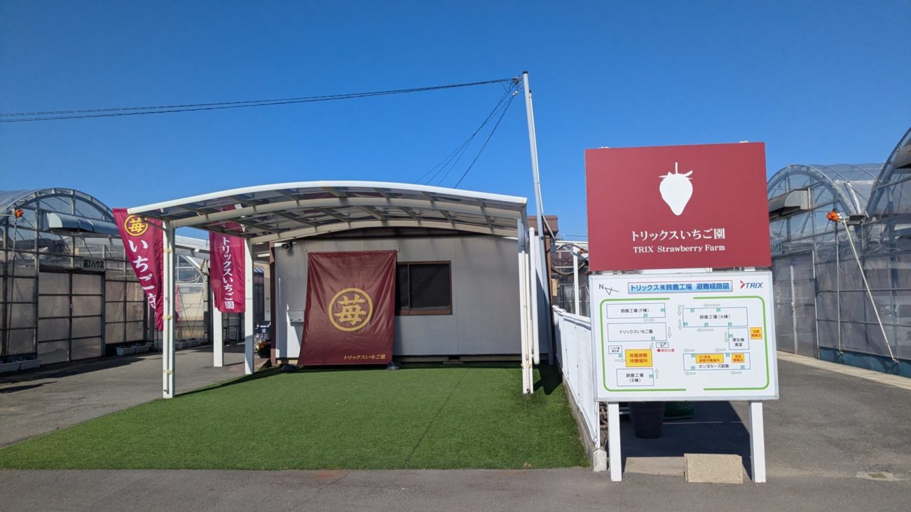 ホンダの工場?の中にあるイチゴ園なので、入っていく時ほんとにあるの??