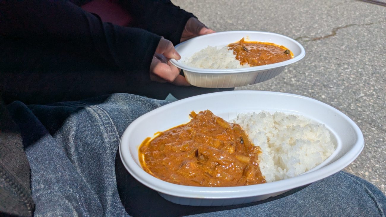 マトン買ったら早々に練習会場へ戻って、おかず日和さんの自家製麹ベーコンスパイスカレーを頂きました😋