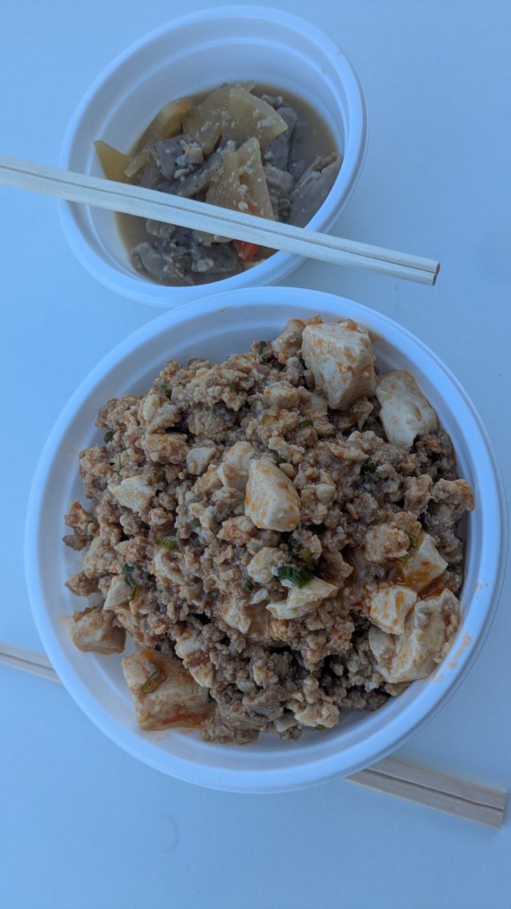 表彰をしている傍らで、帰宅前の腹ごしらえのためにおかず日和さんの麻婆豆腐丼の大盛りをまた食べてましたw