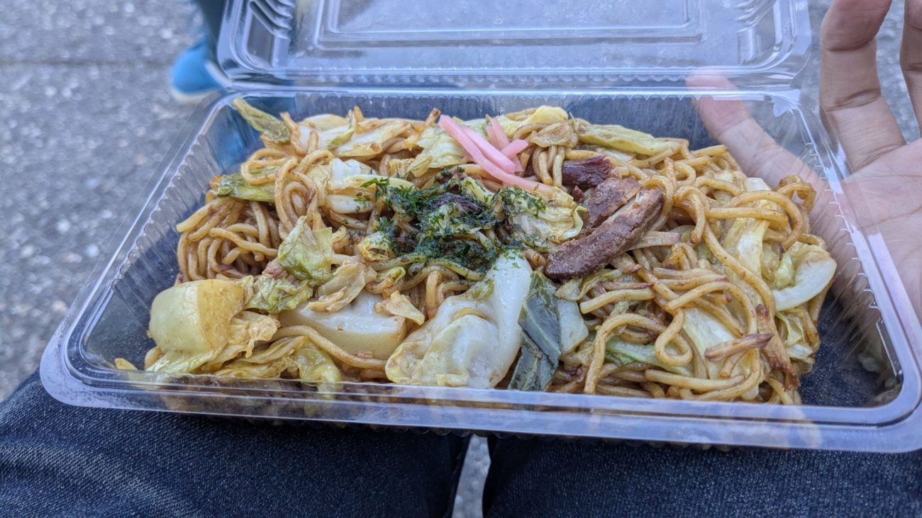 焼きそばは道の駅とかSAで売ってるような感じではなく、シャキシャキキャベツに美味しいベーコンが入っていて⋯ウマウマ!!!(*’﹃’* )